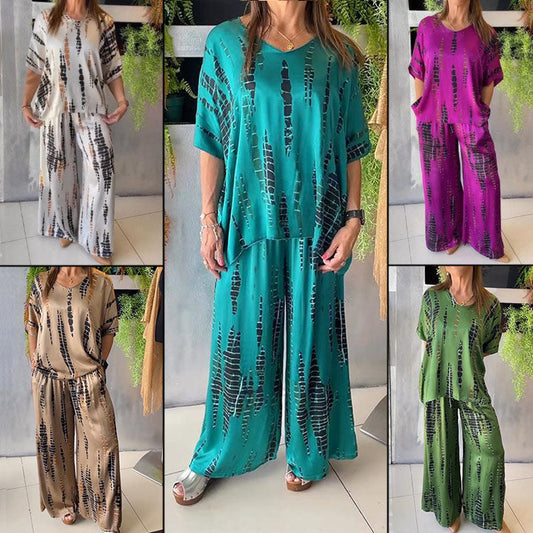 💟Damski dwuczęściowy luźny top z szerokimi nogawkami