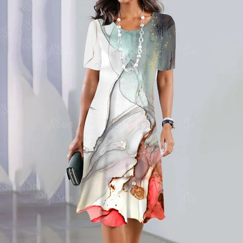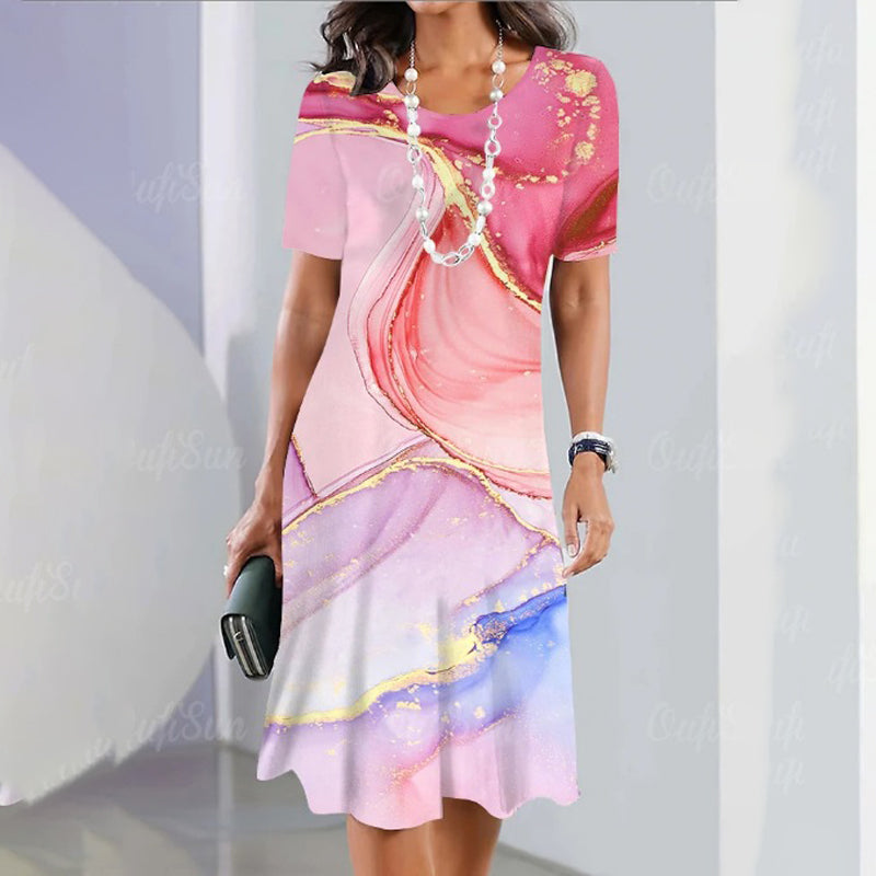 PRZYCIĄGAJĄCY WZROK PROJEKT Z NADRUKIEM: Podnieś swój styl dzięki tej sukience z odważnym, żywym nadrukiem, która zapewnia nowoczesny, szykowny wygląd, idealny na swobodne wyjście lub półformalne wydarzenie.