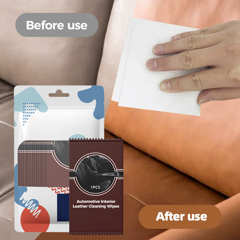 Opakowanie zawiera: 1 * chusteczki do czyszczenia skórzanych elementów wnętrza samochodu