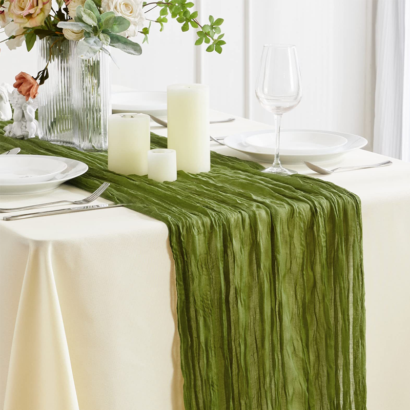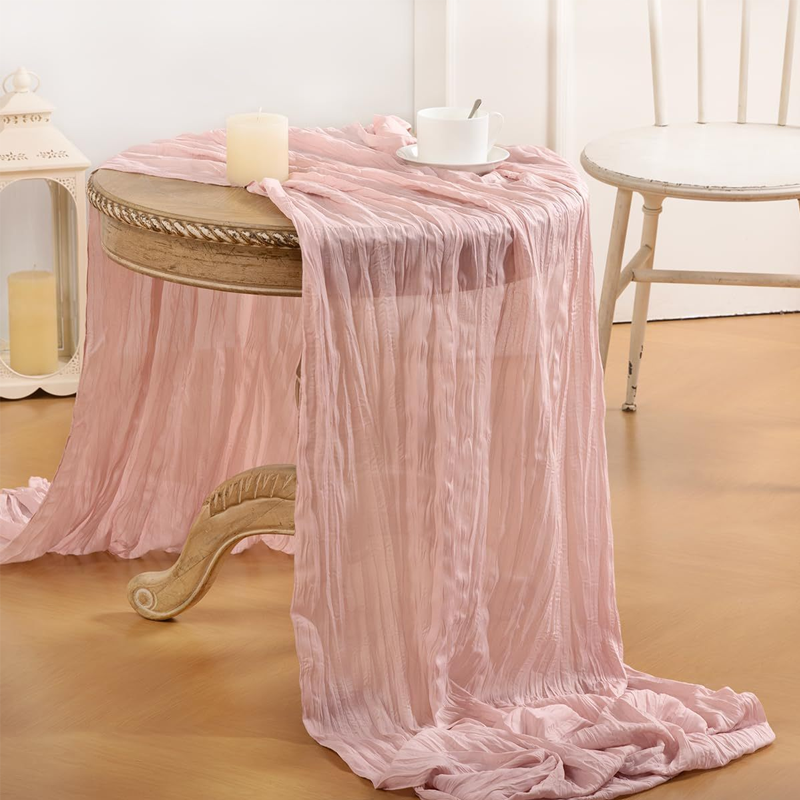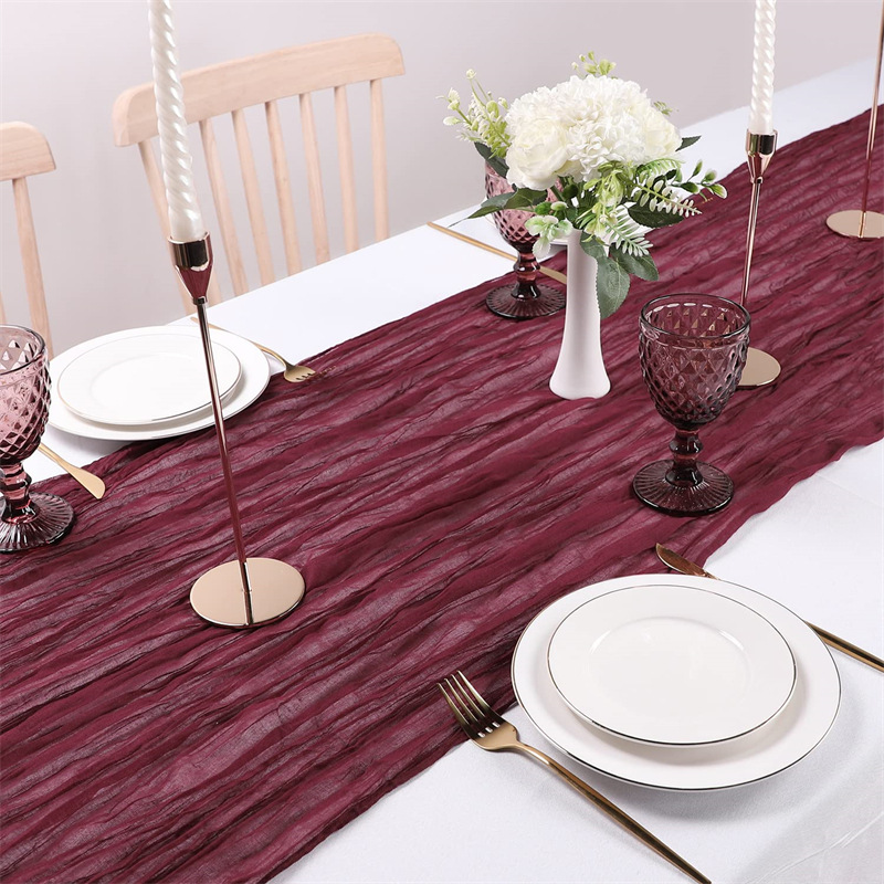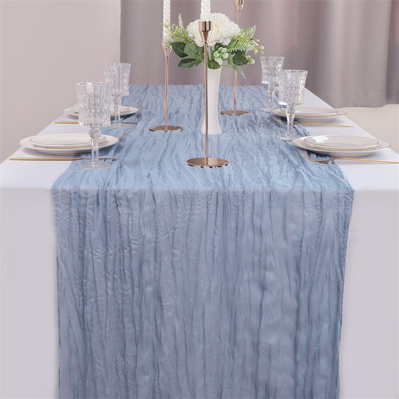 TEKSTUROWANY PLISOWANY WZÓR: Charakteryzuje się unikalną pomarszczoną teksturą, która dodaje głębi i ruchu każdemu nakryciu stołu. Ta inspirowana rzemiosłem plisa tworzy delikatne cienie i grę światła, podkreślając romantyczny, swobodny klimat boho, idealny na wesela, przyjęcia lub przytulne domowe kolacje.