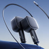 WBUUDOWANY WYSUWANY KABEL DLA WYGODA: Wysuwany kabel płynnie się wysuwa, a po użyciu chowa się, co ułatwia przechowywanie, zmniejsza bałagan i plątanie się kabli, a także pozwala utrzymać porządek i organizację we wnętrzu samochodu.
