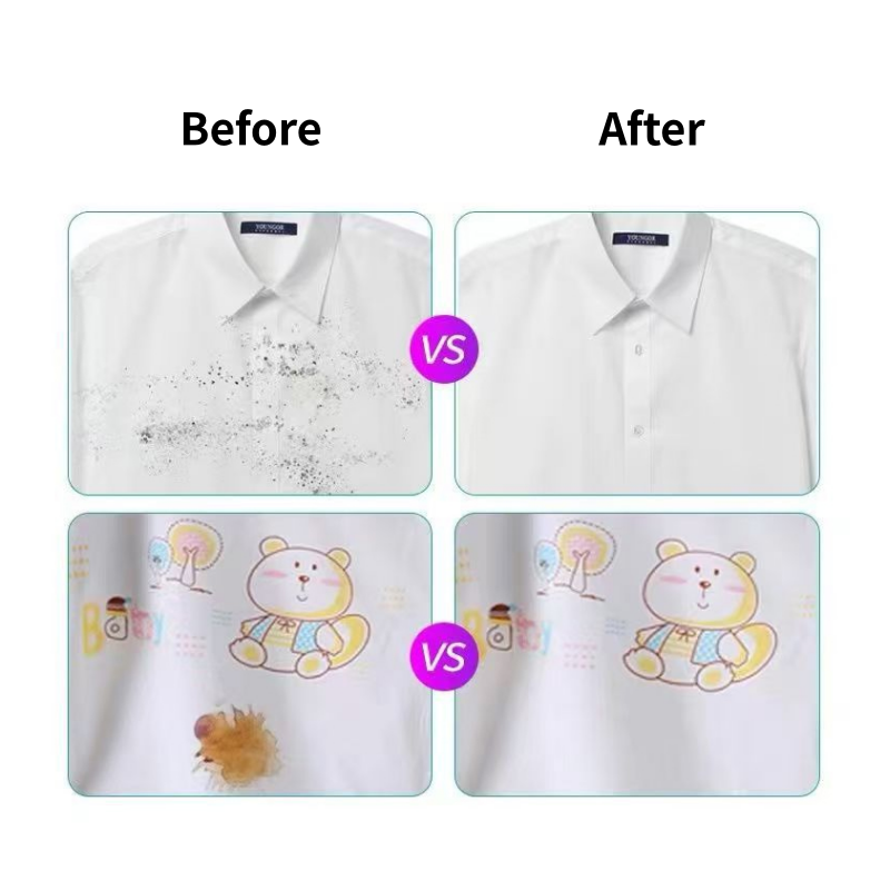 Silne działanie usuwające plamy — skutecznie eliminuje wszelkiego rodzaju uporczywe plamy, w tym tłuste, oleiste i ślady szminki. Głębokie działanie czyszczące przywraca odzieży pierwotny stan bez konieczności intensywnego szorowania.