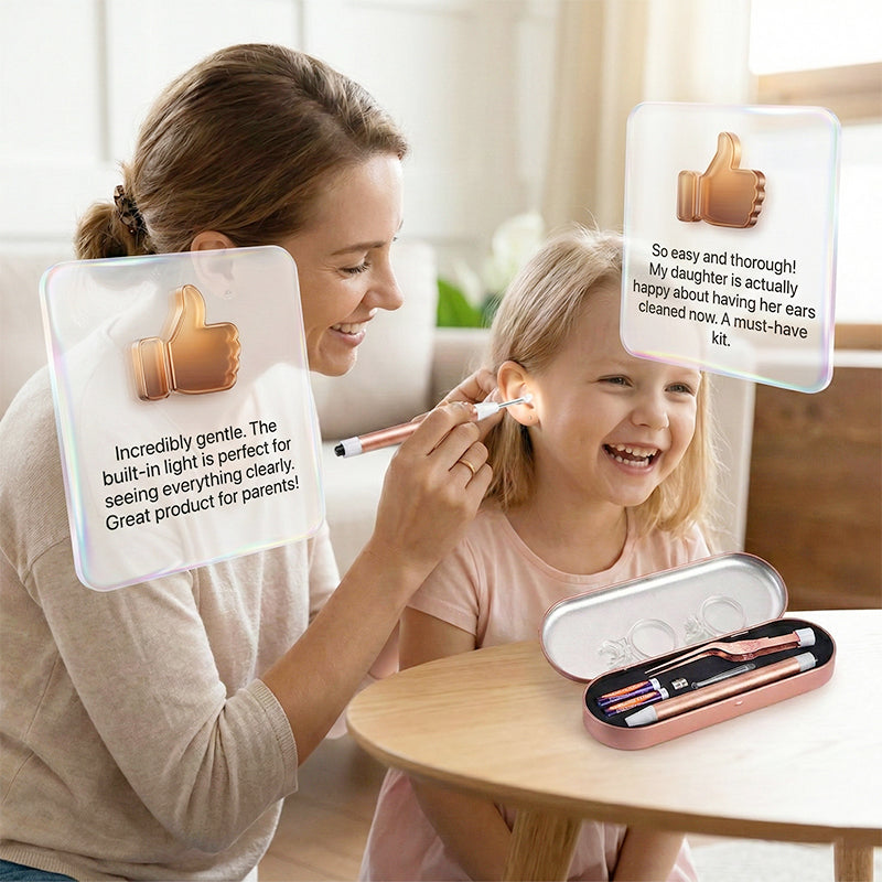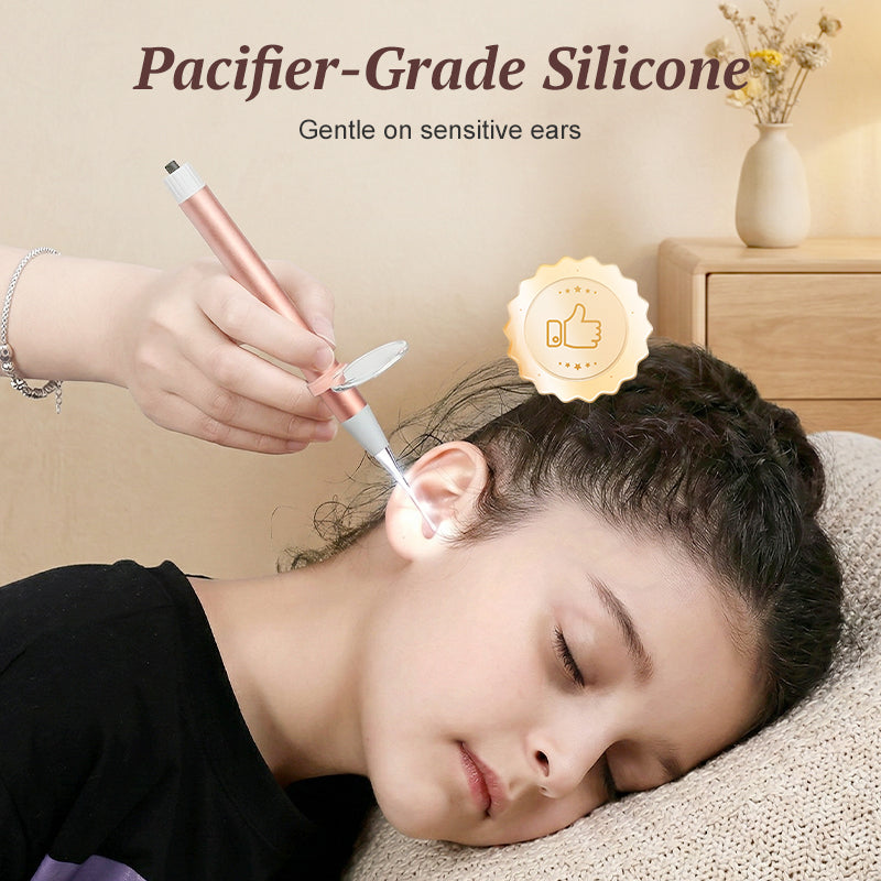 SILIKONOWE KOŃCÓWKI PACIFIER-GRADE – wykonane z ultra miękkiego, bezpiecznego dla dzieci silikonu, zapewniającego delikatny dotyk. Gwarantuje to komfortowe, niepowodujące podrażnień doświadczenie, dzięki czemu czyszczenie uszu staje się spokojnym i pozbawionym strachu procesem zarówno dla dzieci, jak i dorosłych.