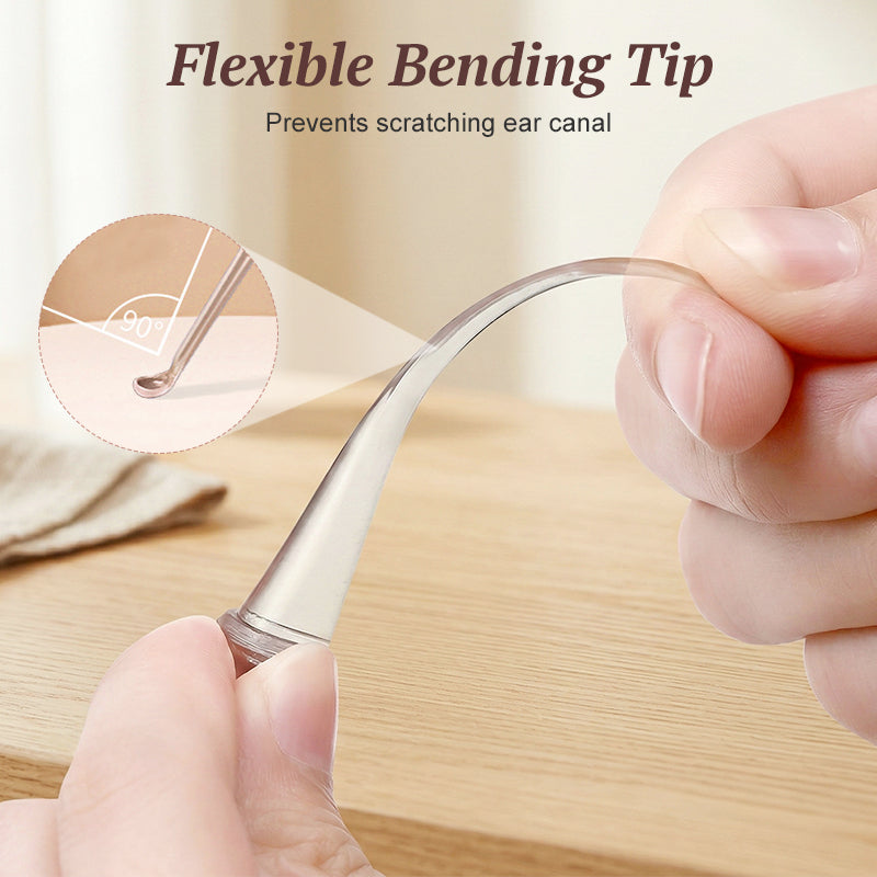 ELASTYCZNA GŁOWICA Z MOŻLIWOŚCIĄ ZGINANIA POD KĄTEM 90° — końcówka łyżeczki została zaprojektowana tak, aby zginać się pod kątem do 90 stopni w momencie kontaktu. Ta innowacyjna funkcja działa jak bufor, chroniąc delikatną ściankę kanału słuchowego przed zadrapaniami i potencjalnym dyskomfortem.