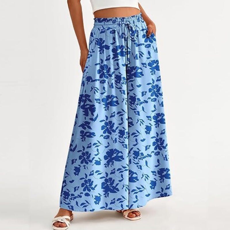 FASON Z SZEROKĄ NOGAWKĄ NA CO DZIEŃ: Luźna, opływowa sylwetka z szerokimi nogawkami jest zarówno stylowa, jak i aktywna, zapewniając swobodę ruchów przy zachowaniu eleganckiej, swobodnej estetyki, idealnej do noszenia na co dzień lub w wakacyjnych stylizacjach.