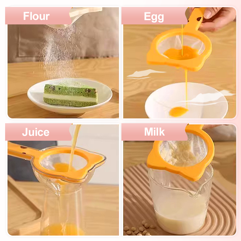 Wyjmowany, łatwy do czyszczenia filtr: filtr można wyjąć, co ułatwia czyszczenie i wymianę. Nadaje się do przesiewania mąki, soków, resztek mleka, sosów lub innych płynów kuchennych.