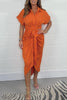 Rochie de cămașă cu mânecă scurtă cu franjuri elegantă din satin