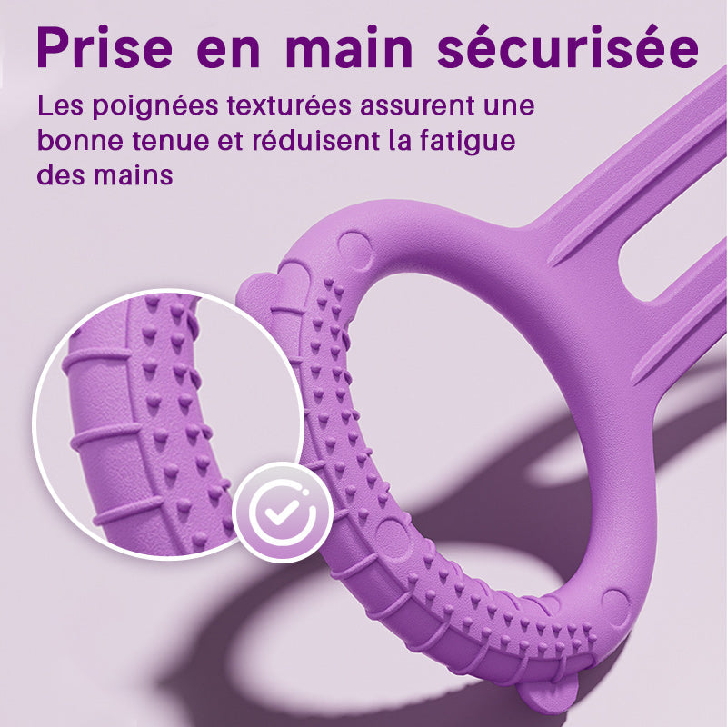 Strukturalne, antypoślizgowe uchwyty – Antypoślizgowe uchwyty zapewniają pewny chwyt, dzięki czemu możesz w pełni skoncentrować się na ruchach, a nie na postawie. Unikalna tekstura zapewnia również delikatny efekt masażu dłoni, zmniejszając zmęczenie rąk podczas długich treningów. Rezultat: mniej zmęczenia, większa stabilność i płynniejsze ruchy podczas każdej sesji treningowej.