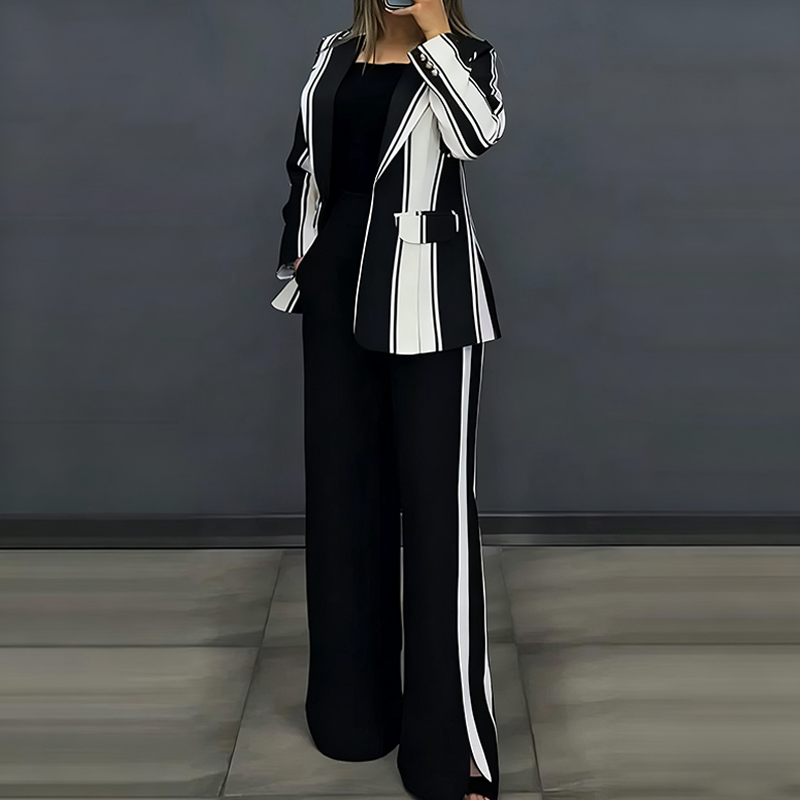 Zestaw zawiera: 1* modny zestaw składający się z marynarki i spodni z szerokimi nogawkami