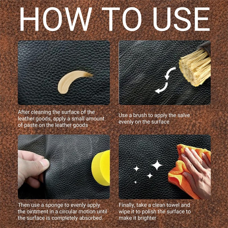 ŁATWY W UŻYCIU– Dokładnie oczyść powierzchnię skóry, równomiernie nałóż balsam pielęgnacyjny, wcieraj gąbką, aż do całkowitego wchłonięcia. Użyj czystego ręcznika, aby usunąć nadmiar balsamu i wzmocnić połysk.