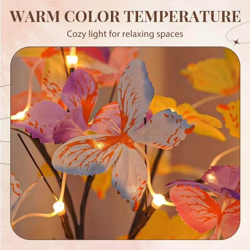 ŚWIĄTECZNA ATMOSFERA NA KAŻDĄ OKAZJĘ: Zmienia zwykłe pomieszczenia w magiczne miejsca z odrobiną fantazji. Niezależnie od tego, czy używasz jej na Boże Narodzenie, Walentynki, czy do codziennego wystroju wnętrz, kolorowy motyw motyli i drzew dodaje radości i uroku, dzięki czemu idealnie nadaje się na prezent lub dekorację sezonową.
