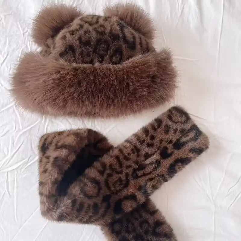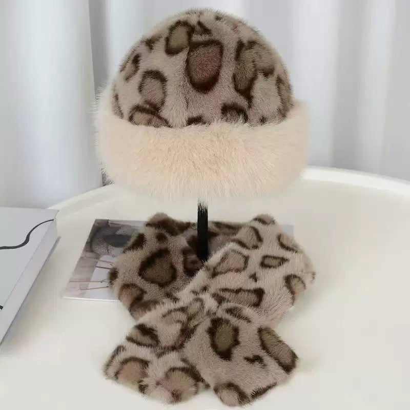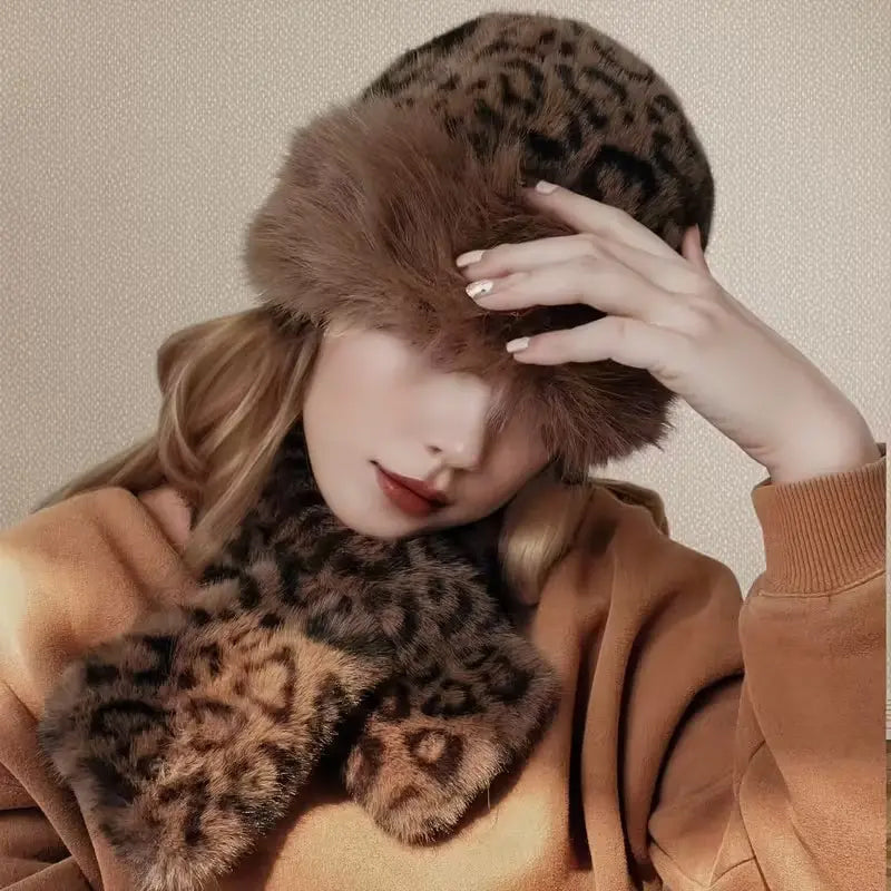 Lista opakowań: 1 * zestaw czapki i szalika z pluszu w panterkę (dwuczęściowy)