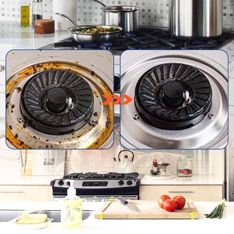 Usuwanie tłuszczu: Specjalnie opracowany do usuwania uporczywego tłuszczu kuchennego. Bez wysiłku rozpuszcza i usuwa pozostałości z płyt grzewczych, okapów kuchennych i innych powierzchni kuchennych, przywracając im pierwotny blask.