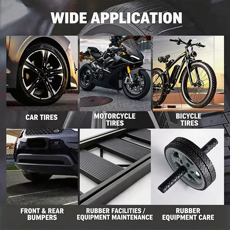 SZEROKI ZAKRES ZASTOSOWAŃ - Idealny do samochodów, motocykli i rowerów. Używaj go na oponach, zderzakach, deskach rozdzielczych i innych gumowych lub plastikowych częściach, aby utrzymać jednolity, salonowy wygląd wszystkich Twoich pojazdów.