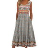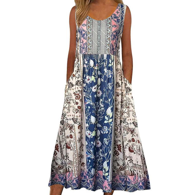 DŁUGA SUKIENKA BEZ RĘKAWÓW: Zaprojektowana bez rękawów i z lejącą długą spódnicą, ta sukienka zapewnia komfort i przewiewność w ciepłe dni, oferując jednocześnie swobodny i stylowy wygląd.