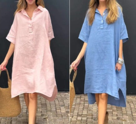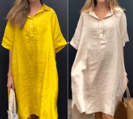 Pakiet zawiera: 1 * Bawełniana i lniana luźna sukienka z kieszeniami
