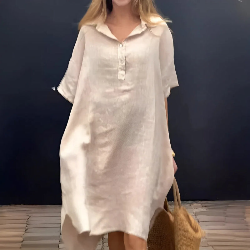 WYGODNY FASON OVERSIZED - Zaprojektowana z myślą o najwyższym komforcie, ta sukienka oferuje luźną sylwetkę, która elegancko układa się na ciele, pozwalając na swobodę ruchów i luźny klimat.