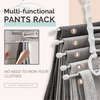 Oszczędzająca miejsce konstrukcja: regulowany wieszak można zawiesić stabilnie za pomocą dwóch haczyków lub zawiesić pionowo. Pomieści do 5 par spodni jednocześnie i sprawi, że Twoja szafa będzie bardziej uporządkowana.