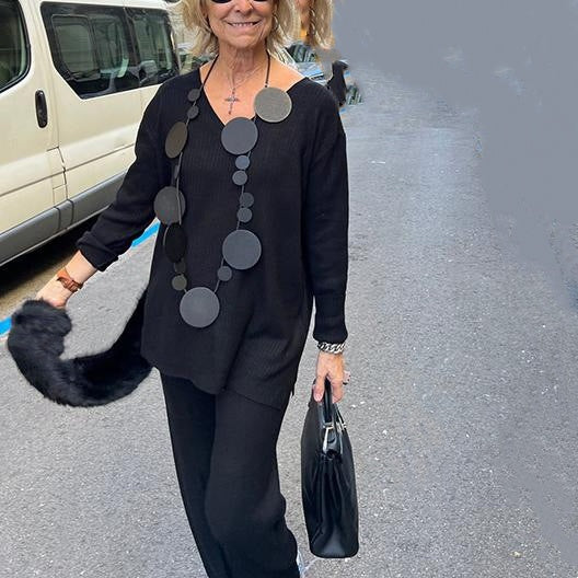 PEŁNY ZESTAW: Ten dwuczęściowy zestaw zawiera elegancki top z dekoltem w szpic i stylowe spodnie z szerokimi nogawkami. Ten zestaw ułatwia stworzenie kompletnego modnego wyglądu.