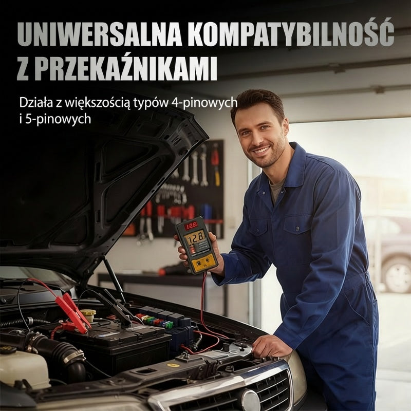 UNIWERSALNA KOMPATYBILNOŚĆ - Zaprojektowany z myślą o maksymalnej wszechstronności, ten tester jest uniwersalnie kompatybilny z większością standardowych 4-pinowych i 5-pinowych przekaźników samochodowych. Eliminuje to potrzebę posiadania wielu specjalistycznych testerów, zapewniając gotowość na różne scenariusze diagnostyczne.