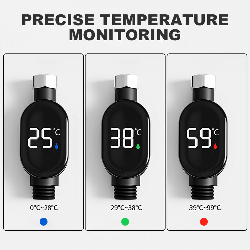 PRECYZYJNE MONITOROWANIE TEMPERATURY: Zapewnia odczyty temperatury wody w czasie rzeczywistym. Niebieskie światło wskazuje niską temperaturę, zielone oznacza optymalną temperaturę, a czerwone sygnalizuje, że woda jest zbyt gorąca, zapewniając komfortowe i bezpieczne kąpiele.