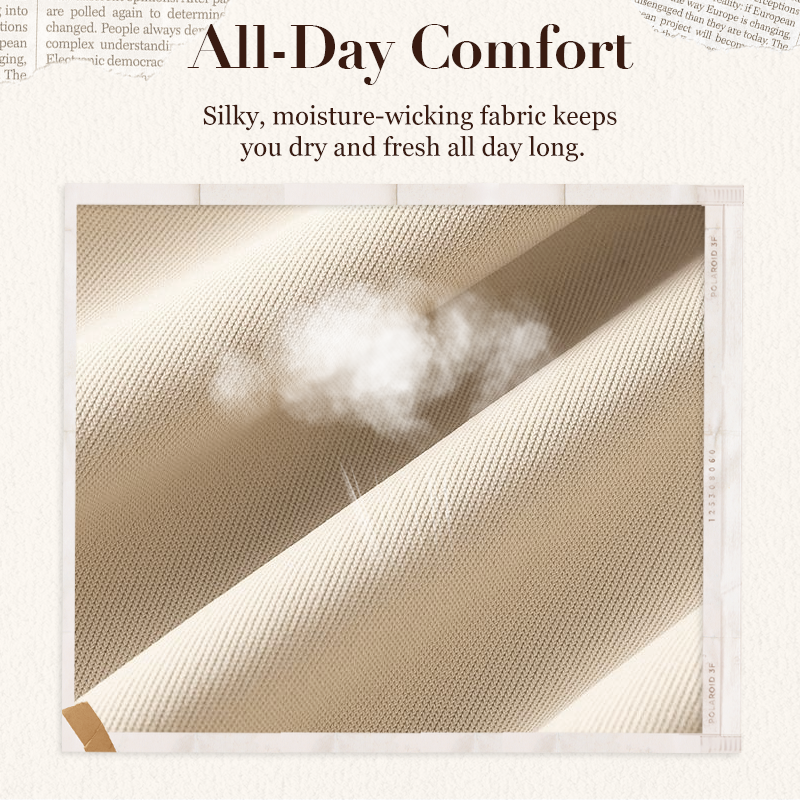 ODWODNICZAJĄCA, ODDYCHAJĄCA TKANINA – Wykonana z jedwabistej, oddychającej tkaniny, która odprowadza wilgoć, zapewniając świeżość i suchość przez cały dzień. Bardzo elastyczny materiał dopasowuje się do sylwetki bez utraty komfortu — nawet podczas długotrwałego noszenia.