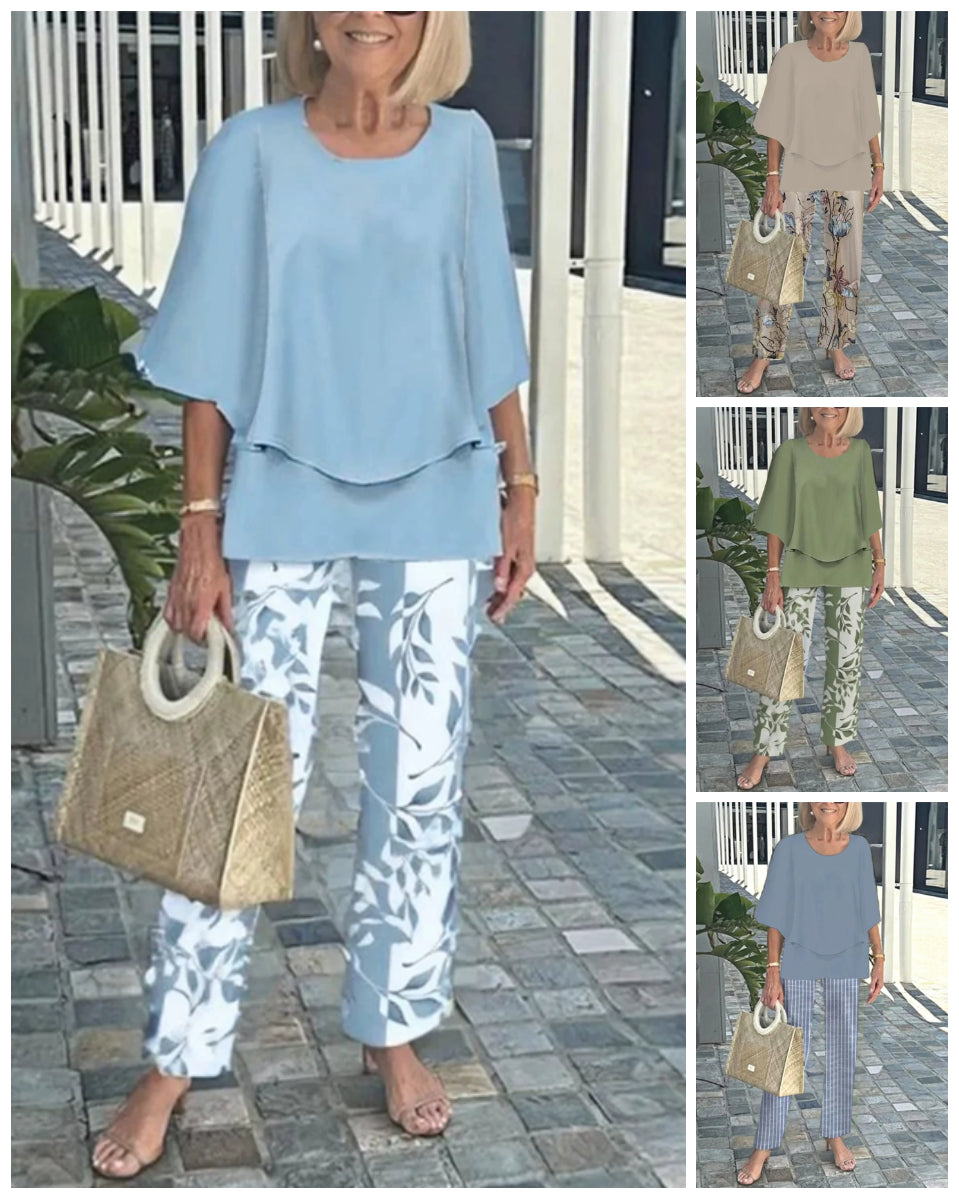 Opakowanie zawiera: 1 * Zestaw damskich spodni z nadrukiem i topu z okrągłym dekoltem